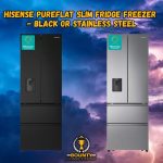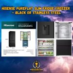 Tired of always having to defrost your freezer? This Hisense fridge freezer has Total No Frost technology that evenly distributes cold air inside. It helps by stopping ice and water from building up. Its premium PureFlat side-by-side door design lets you see everything clearly when you're finding bits for dinner. Plus, a non-plumbed water dispenser built into the door means you can enjoy cool water whenever you fancy it. Good to know - The Metal Tech Cooling circulates the air to every corner of the fridge which helps to keep your food fresher for long - With the easily gliding drawers you'll be able to get hold of your frozen goodies - even the ones hiding in the back of the freezer - The LED display and handy electronic controls let you effortlessly adjust the temperature of the fridge freezer