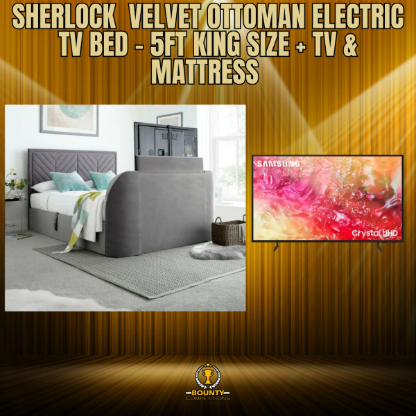 Bring some beautiful and contemporary style to your bedroom with the fantastic Sherlock Light Grey Velvet Ottoman Electric Media TV Bed. This bed has been designed to incorporate style and technology in one easy-to-use format whilst adding a luxurious touch to your bedroom. Settle down for a movie night in the comfort of your bed with the Sherlock Media Bed, as the footboard can store a slimline TV up to 43". Simply use the included remote control to raise and lower the TV to create a cinema experience in your bedroom! Thanks to the gas-powered ottoman lift, you can store plenty of items inside the Sherlock bed frame, such as bedding, clothes and more. For your convenience, assemble the ottoman feature to open on either the left or right side SAMSUNG DU7100 43" Crystal UHD 4K HDR Smart TV 2024 - UE43DU7100Entries